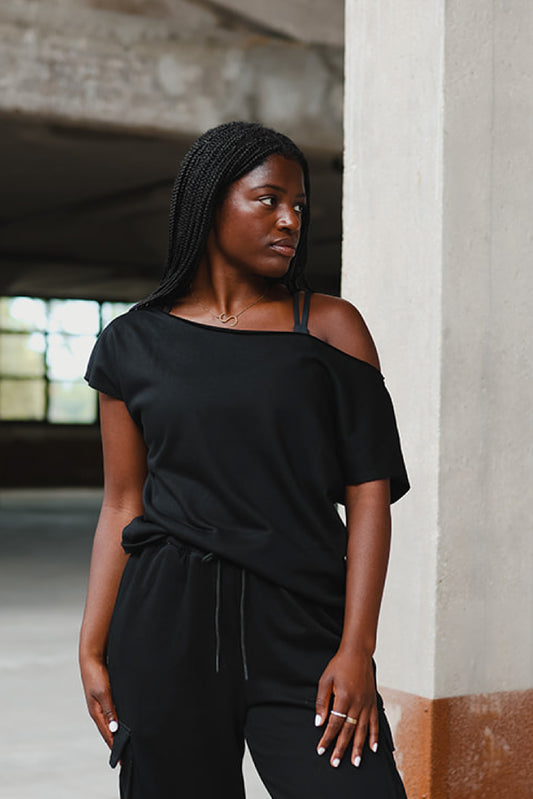 Sale Sold outRegular price $40.00Regular priceUnit price perSale price $40.00Black French Terry Off the Shoulder Tee