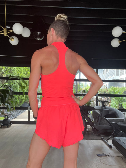 Sale Sold outRegular price $58.00Regular priceUnit price perSale price $58.00Mock Neck Shelf Tank Coral Punch