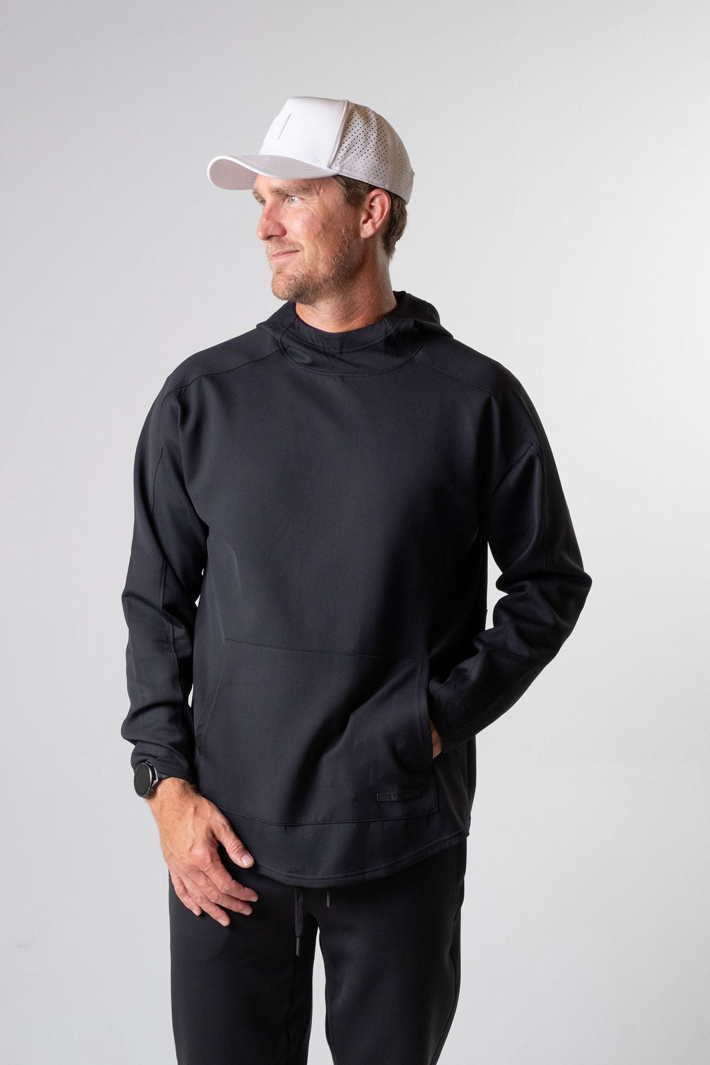 This hoodie is made for comfort and designed for performance. With a comfortable funnel neck, front pocket and subtle tone on tone branding, this hoodie keeps up from warm-ups to weekends.