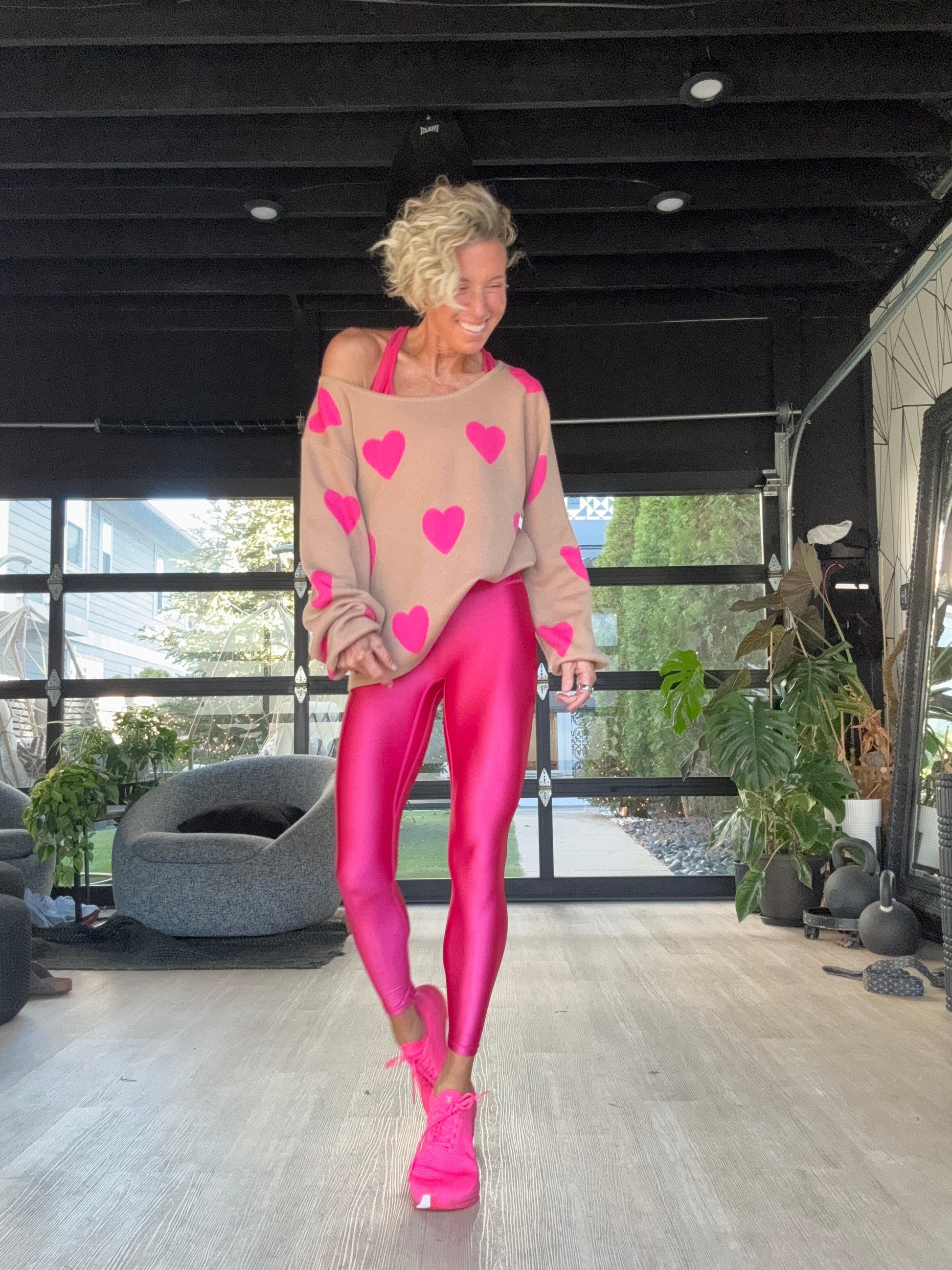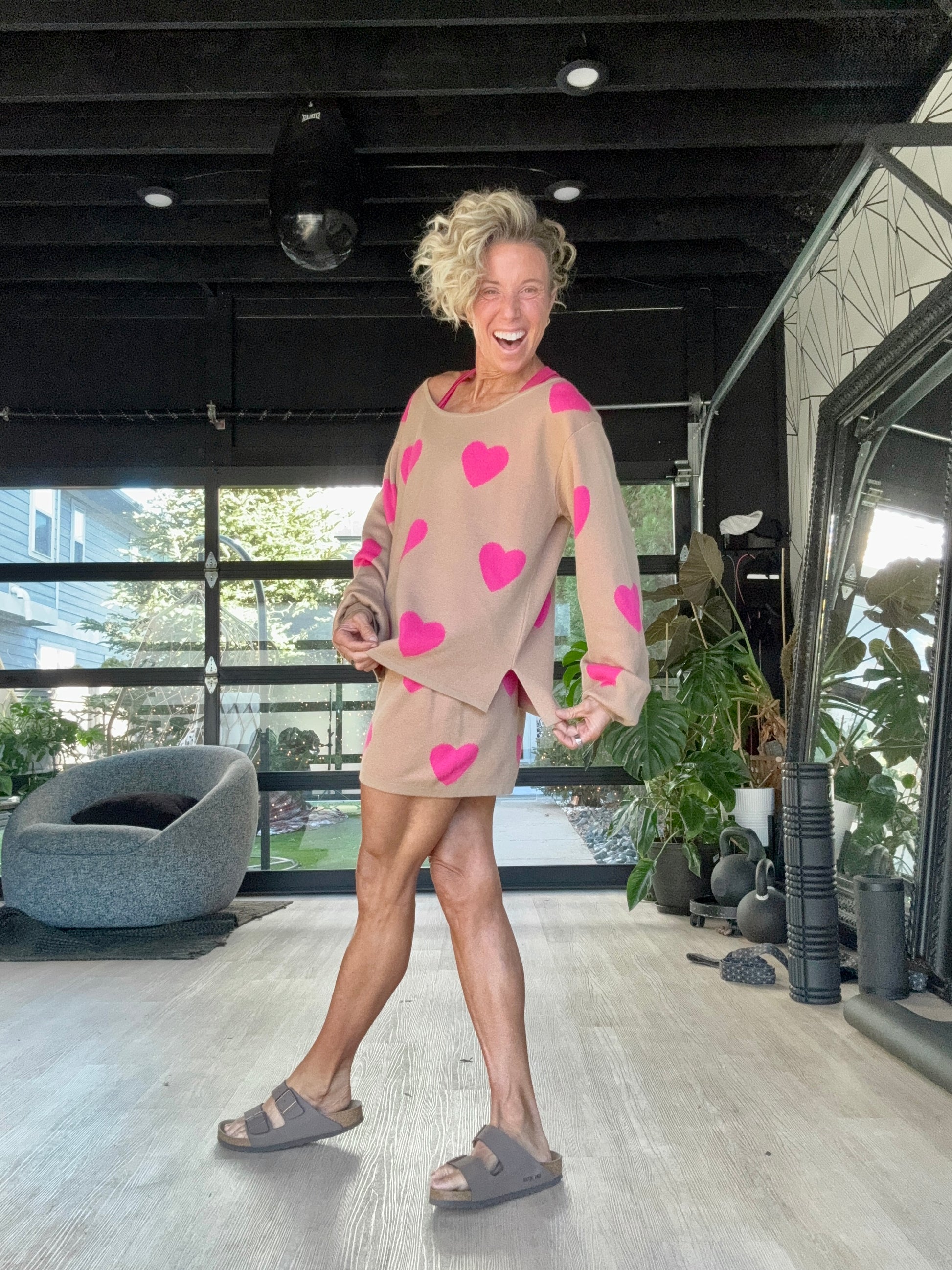 Get ready for Valentines Day with our perfectly crafted sweater set. This relaxed long-sleeve sweater features an open neckline and a loose fit, designed to tuck casually into matching shorts with functional notched sides. The sleeves gather neatly at the cuffs, making it a breeze to push them up when you want. Erin wears a size Small, showing there’s plenty of room to move and groove! For best care, wash on delicate